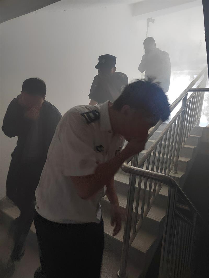 在火災疏散逃生演練中,當警報拉響后,大家按照“捂鼻、彎腰、靠墻走”的七字逃生要領(lǐng),聽從指揮快速有序地迅速撤離至安全地帶。